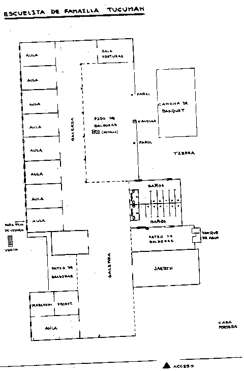 Descripción: Fue una escuela rural desocupada, estaba cercada por alambre tejido; entrando en ella a la izquierda había un aula y dos oficinas administrativas. Un poco más adelante, a la derecha, estaban los baños, y a la izquierda ocho aulas. Frente a la última se encontraba una habitación que se utilizaba como sala de torturas.