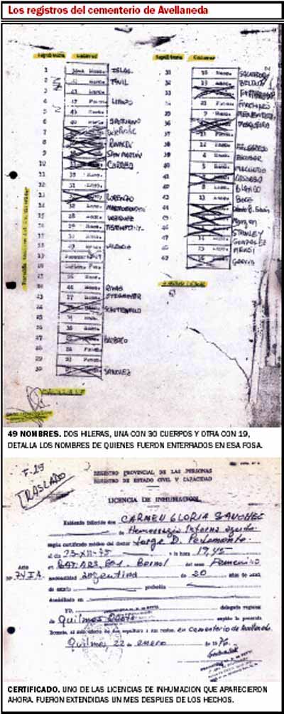 Por lo menos 49 de los muertos en Monte Chingolo fueron enterrados en una fosa común en el Cementerio de Avellaneda.
